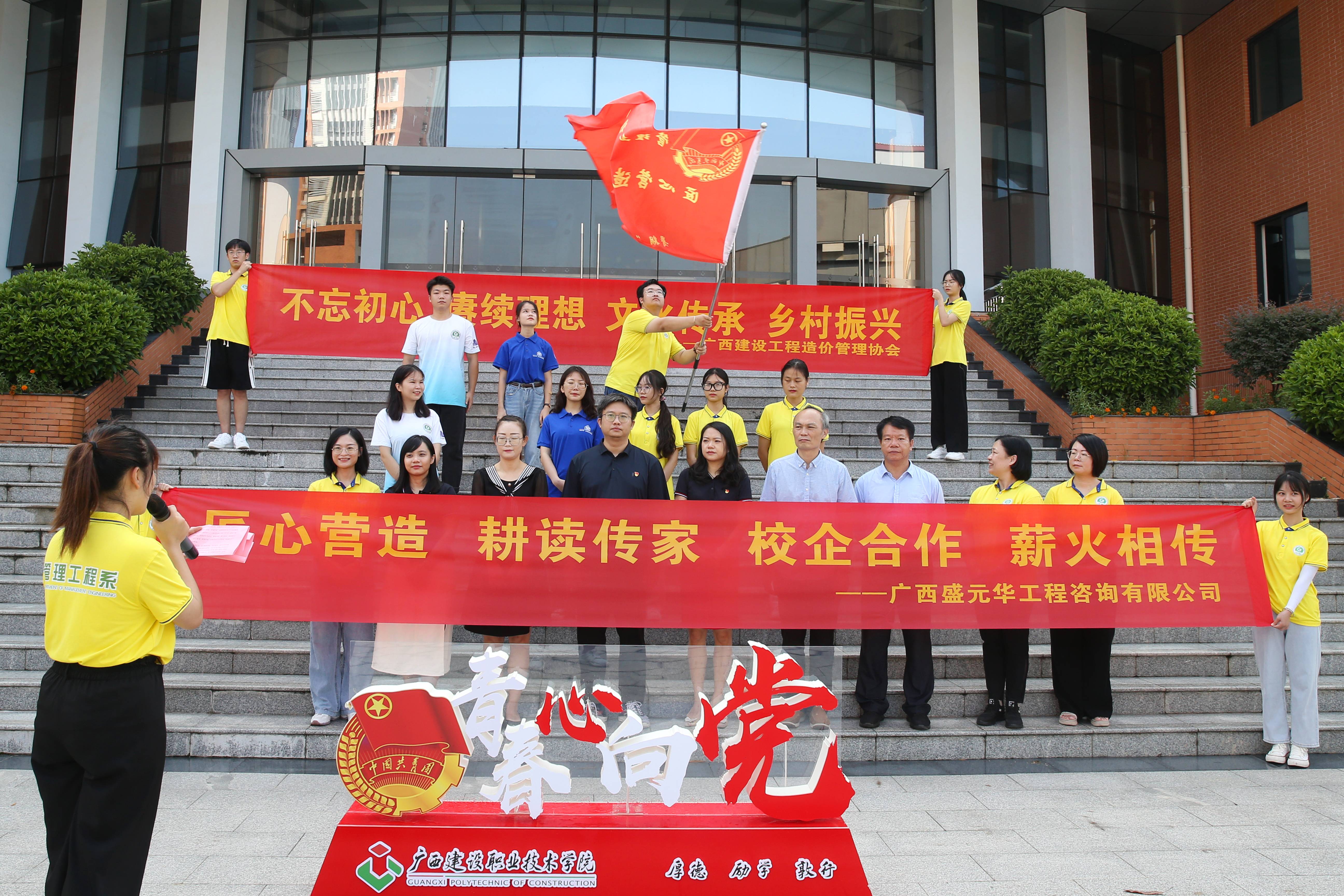 黃藝副總經(jīng)理在出征儀式上講話 據(jù)悉,我公司去年與廣西建設職業(yè)技術(shù)學院校企合作的“三下鄉(xiāng)”社會實踐活動收到了良好的社會效果。再次出征啟程,依托學?!叭恕笔痉断灯脚_,“雙高”院校建設工程管理專業(yè)群建設,融合互聯(lián)網(wǎng)+項目打造,由廣西建設職業(yè)技術(shù)學院管理工程系、馬克思主義學院聯(lián)手組織,得到我公司與廣西建設工程造價管理協(xié)會全程指導,既加強了校企合作聯(lián)系,又體現(xiàn)了行業(yè)企業(yè)的社會擔當,更借助實踐檢驗育人實效,實現(xiàn)了學校、行業(yè)、企業(yè)“三線交融”,匯聚校行企力量,助力鄉(xiāng)村振興。