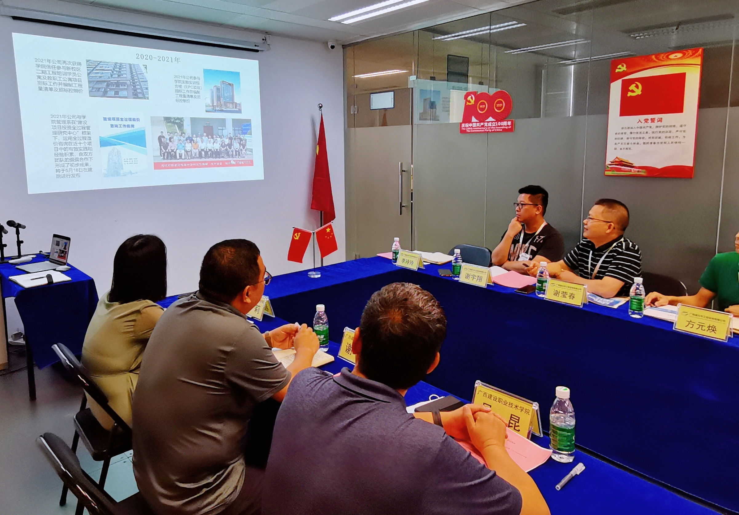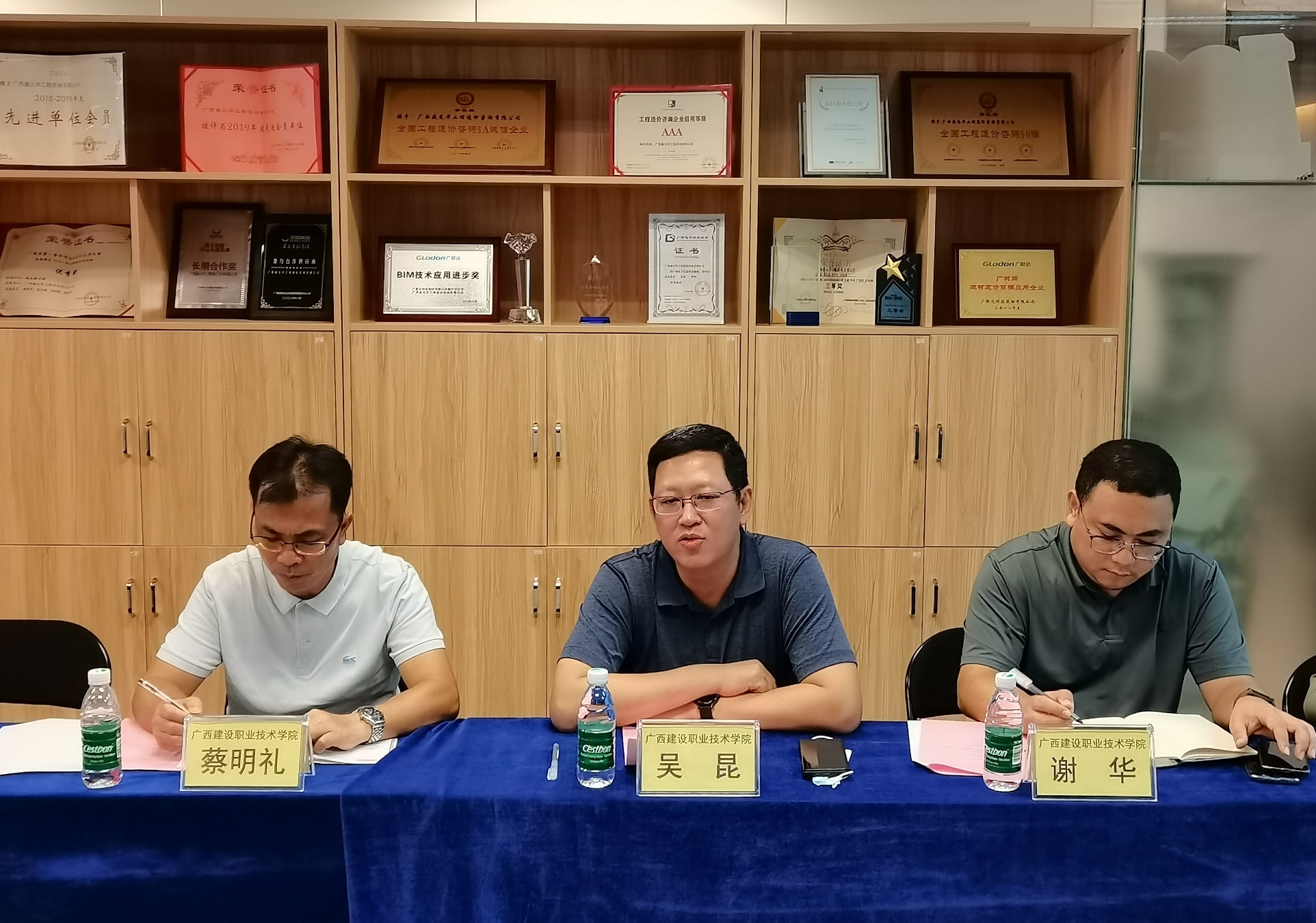 廣西建設(shè)職業(yè)技術(shù)學(xué)院黨委副書(shū)記、院長(zhǎng)吳昆,管理工程系黨總支書(shū)蔡明禮,管理工程系副主任記謝華,招生就業(yè)處校企科科長(zhǎng)李彥達(dá),工程造價(jià)團(tuán)隊(duì)負(fù)責(zé)人程莉,工程造價(jià)專(zhuān)業(yè)專(zhuān)任教師李斌。我公司董事長(zhǎng)方元煥,總經(jīng)理陳浩,黨支部書(shū)記、常務(wù)副總經(jīng)理謝瑩春,副總經(jīng)理陸冬,副總經(jīng)理黃藝,總經(jīng)理助理、總工辦總工程師謝宇翔,建院分公司負(fù)責(zé)人尹素花,公司國(guó)家注冊(cè)安裝一級(jí)造價(jià)工程師李玲玲出席了調(diào)研座談會(huì)。