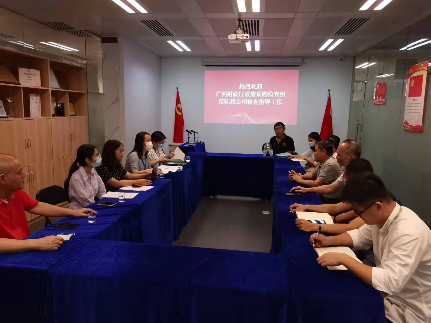 8月13日上午,廣西壯族自治區(qū)財(cái)政廳政府采購檢查組蒞臨我公司進(jìn)行年度檢查現(xiàn)場查驗(yàn)工作。我公司總經(jīng)理陳浩、副總經(jīng)理黃藝組織公司政府采購工作相關(guān)人員積極配合檢查組開展工作。